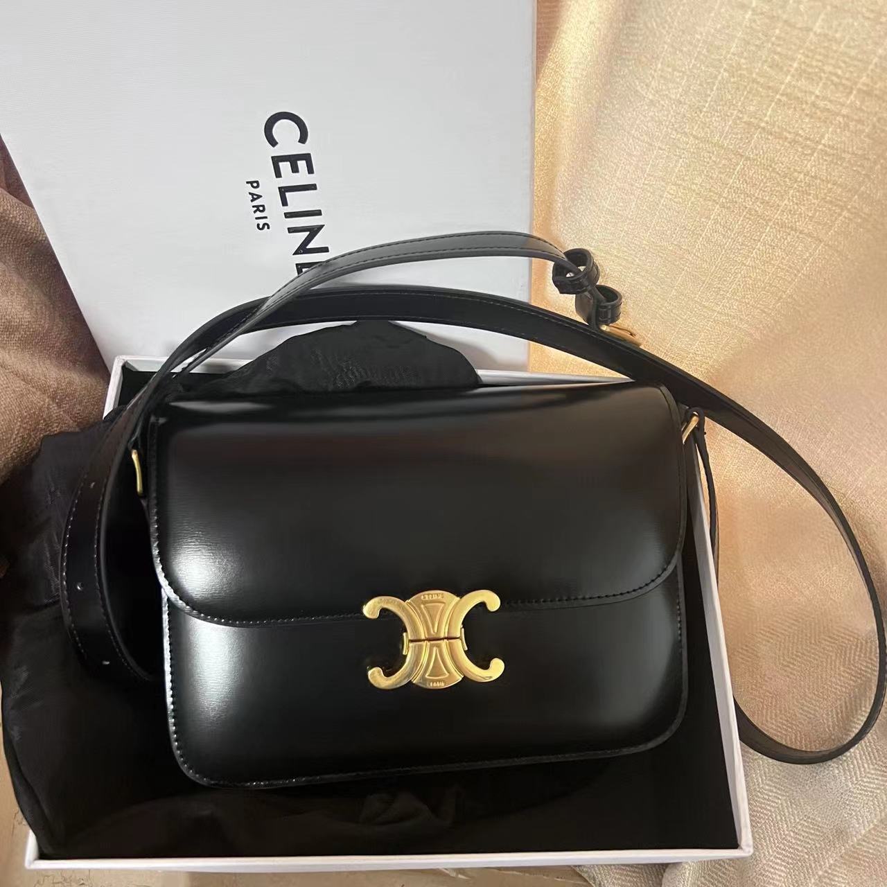 Celine Medium Triumph Bag Shiny Calfskin Black 187363BF4.38NO > BAG