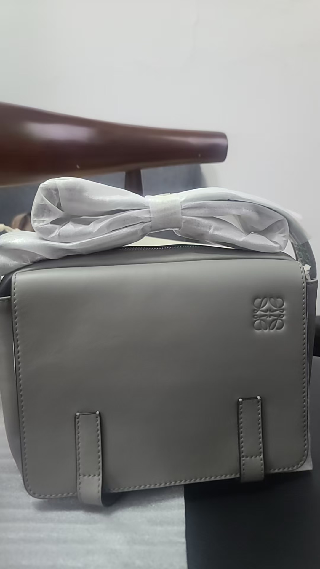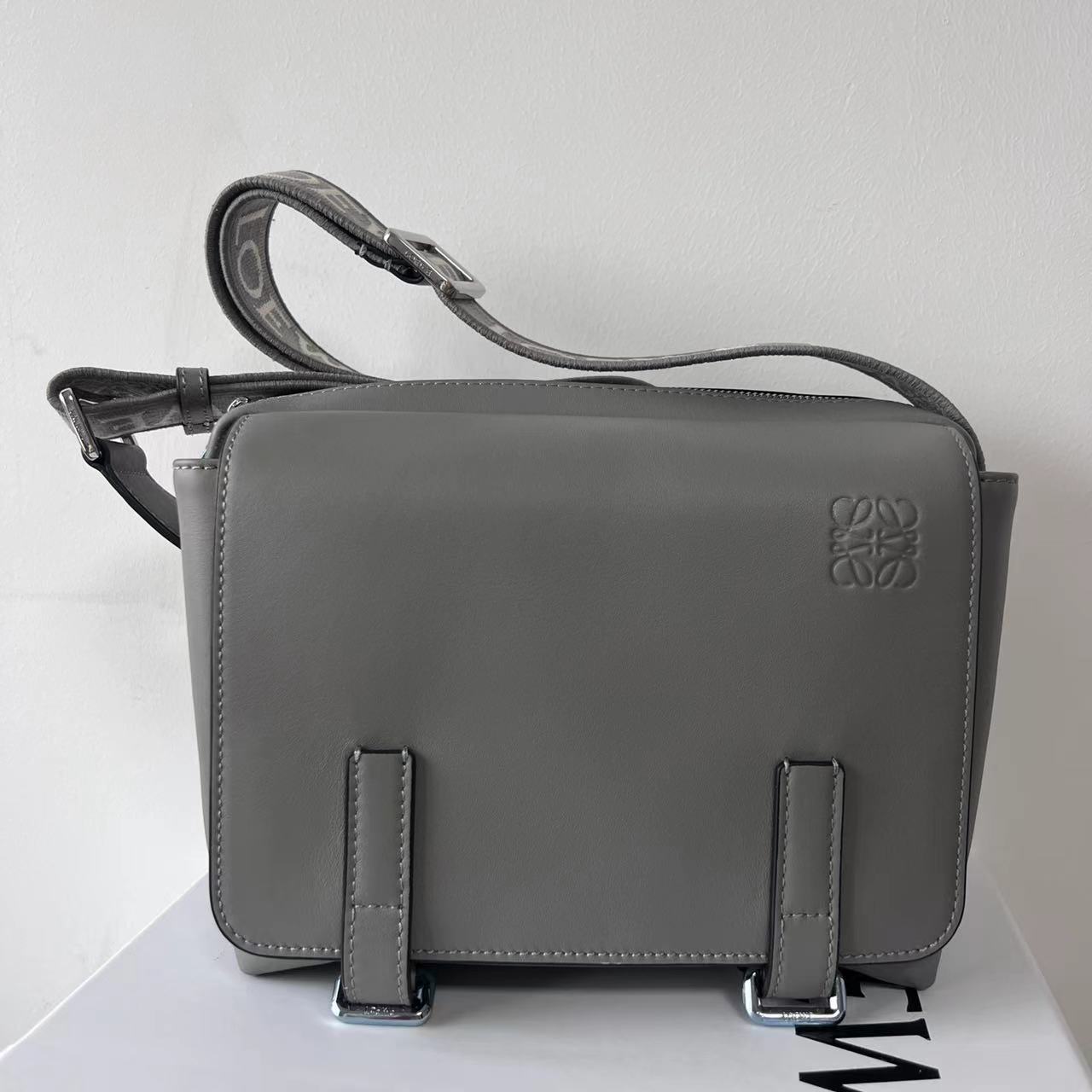 Loewe XS Military Messenger Bag - Flexible Smooth Calfskin and Jacquard, Color: Asphalt Gray, B553A72X21 > BAG